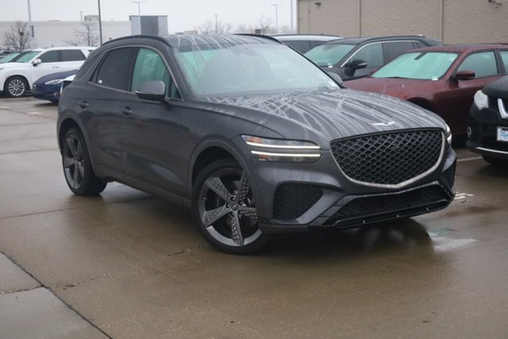 This GV70 is well equipped with Sport Advanced Package, Sport Prestige Package (Nappa Leather Seating Surfaces w/Suede Inserts, Wheels: 21" Sport Dark Sputtering Alloy, 12.3" 3D Digital Cluster, 3-Zone Climate, Acoustic Rear Door Glass, Carbon Fiber Trim, Electronic Limited-Slip Differential, Heads-Up Display, Heated 2nd Row Seats, Manual Rear Side Sunshades, and Option Group 06), Heated & Ventilated Front Bucket Seats, Heated door mirrors, Navigation System, Power Liftgate, Power moonroof, 3.909 Axle Ratio, 4-Wheel Disc Brakes, 9 Speakers, ABS brakes, Adaptive suspension, Air Conditioning, AM/FM radio: SiriusXM, Android Auto & Apple CarPlay, Anti-whiplash front head restraints, Auto High-beam Headlights, Auto-dimming door mirrors, Auto-dimming Rear-View mirror, Automatic temperature control, Brake assist, Bumpers: body-color, Delay-off headlights, Driver door bin, Driver vanity mirror, Dual front impact airbags, Dual front side impact airbags, Electronic Stability Control, Emergency communication system, Exterior Parking Camera Rear, Four wheel independent suspension, Front anti-roll bar, Front Bucket Seats, Front Center Armrest w/Storage, Front dual zone A/C, Front reading lights, Fully automatic headlights, Garage door transmitter: HomeLink, Heated front seats, Illuminated entry, Knee airbag, Leather Seating Surfaces w/Mesh Insert, Low tire pressure warning, Memory seat, Occupant sensing airbag, Outside temperature display, Overhead airbag, Overhead console, Panic alarm, Passenger door bin, Passenger vanity mirror, Power door mirrors, Power driver seat, Power passenger seat, Power steering, Power windows, Radio: AM/FM/SiriusXM/HD Premium Audio System, Rain sensing wipers, Rear anti-roll bar, Rear Parking Sensors, Rear reading lights, Rear seat center armrest, Rear window defroster, Rear window wiper, Remote keyless entry, Security system, Speed control, Speed-sensing steering, Speed-Sensitive Wipers, Split folding rear seat, Spoiler, Steering wheel memory, Steering wheel mounted audio controls, Tachometer, Telescoping steering wheel, Tilt steering wheel, Traction control, Trip computer, Turn signal indicator mirrors, Variably intermittent wipers, and Ventilated front seats.